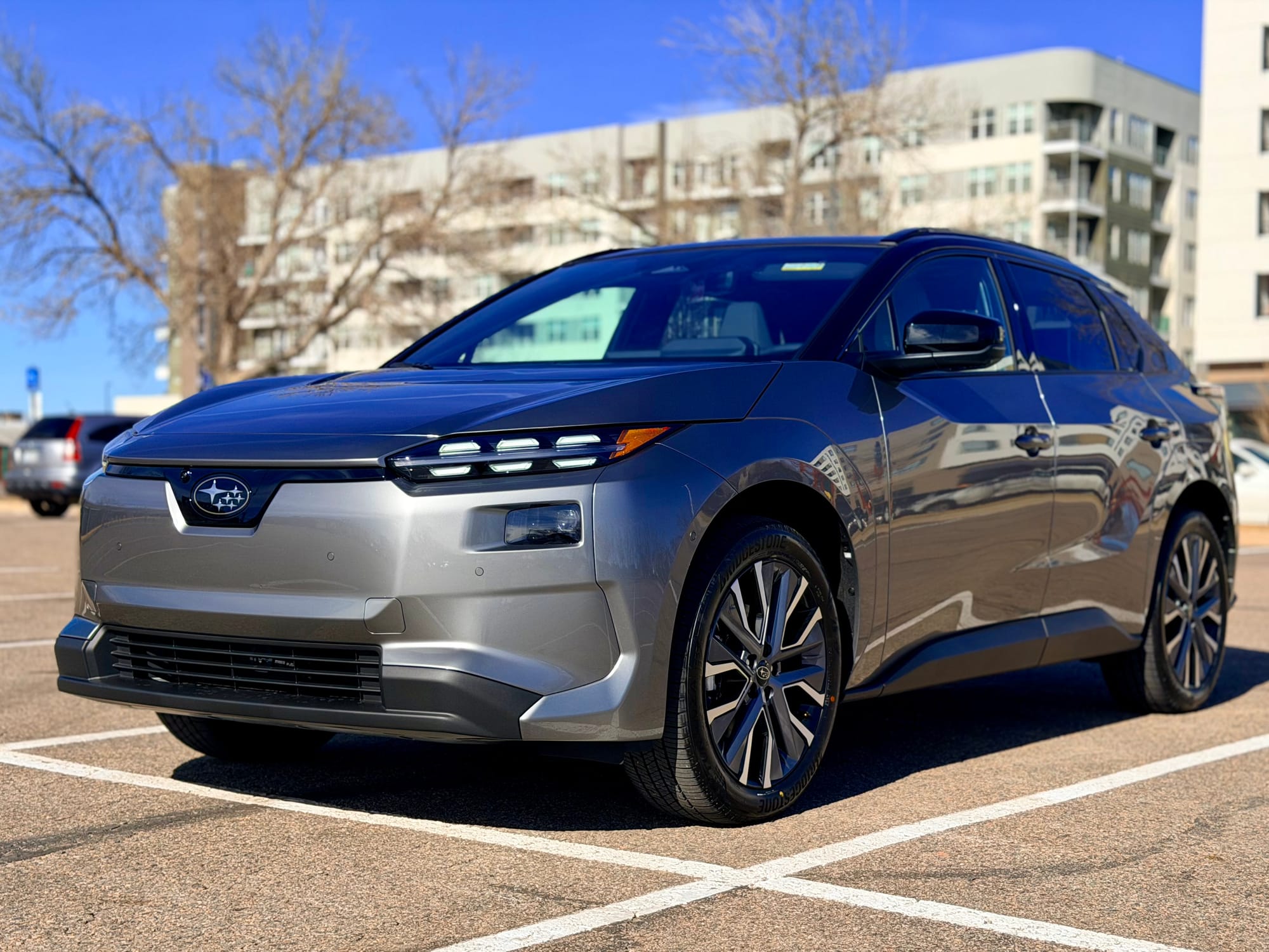 Picked up a Solterra from the dealer. We had to order it, and it took about 5-6 weeks for it to get manufactured in Japan and sent over. We opted for a nice gray exterior with a clean black/light gray interior. Absolutely thrilled with it so far. It’s quiet, comfortable, and has some oomph to it. Also it’s a Subaru - this will be the third I’ve owned, my whole family are Subaru folks - must be a Colorado thing :)